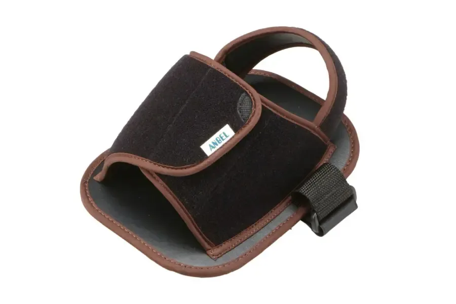車いすのフットレストから足が落ちるのを防ぎます。介助者から見えにくい、足元の安全対策に。