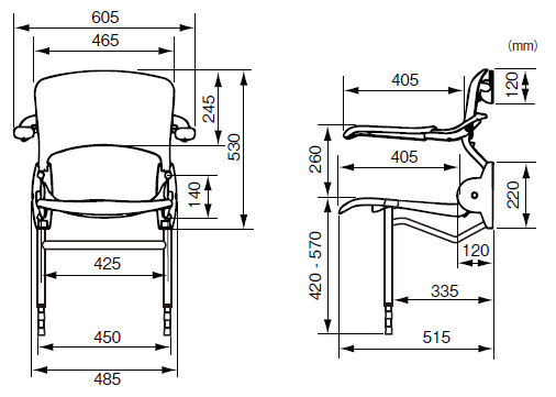 - シートの高さは420〜570 mmの間に設置が可能です。(設置後の高さは固定)