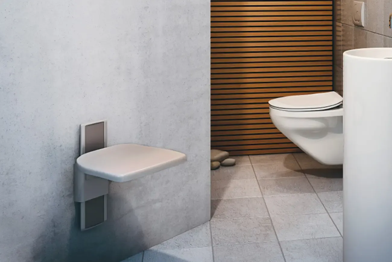 | 主な用途・対象者 | 玄関、キッチン、高層ビルのエレベータ内への設置など。水場やシャワーシートとしての使用不可。使わないときは折りたたみ可能。 |