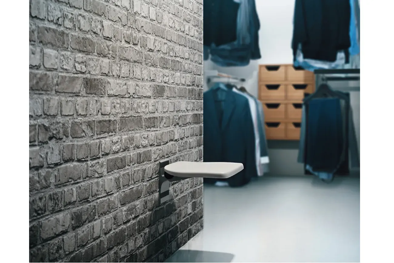 パブリックでは、エレベーター内の腰掛や階段の踊り場に。 - 上下の高さを調整できるものと固定の2タイプ