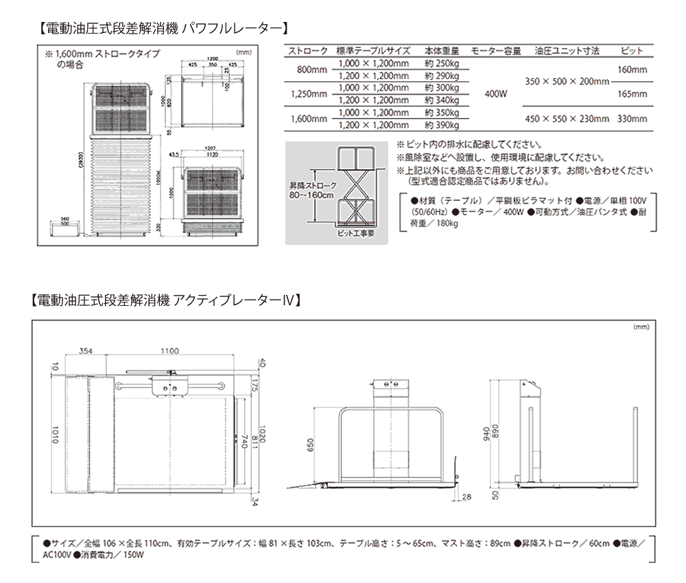 | 昇降ユニット | 油圧内蔵 |
