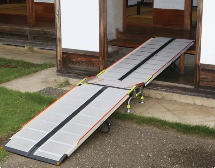 持ち運びが便利で、狭い間口・高い段差に簡単に設置できる車いす用スロープ。