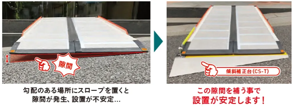 ケアスロープと地面の隙間に敷くことで、勾配がある場所でも安定して設置できます。