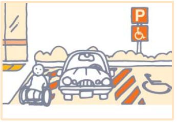 駐車場を設ける場合は、車いすを使用する方や体の不自由な方のために、建物の出入口の近くに車いすを使用する方が使える十分な幅の駐車スペースを確保してください。
