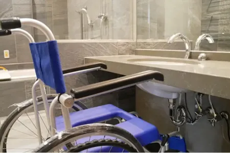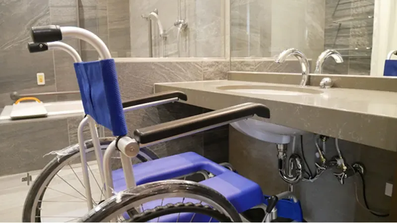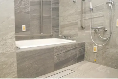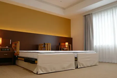 今回、ご高齢の方や身体に障害がある訪問者にも利用できるようにツインルームをユニバーサルルームへ改修されました。当社の一級建築士事務所 バリアフリー設計建築研究所がユニバーサルルーム化への基本設計と施工管理を担当しました。