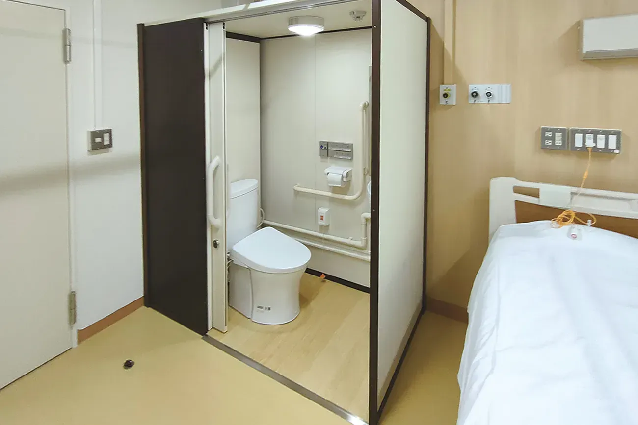 病院の病室内にトイレを設置することにより、入院患者のトイレ移動時の転倒リスクを低減しました。