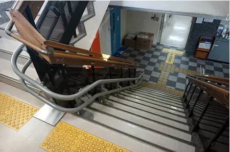 盲人情報文化センターでは、盲人の方や高齢者の方が自由に移動できるよう、バリアフリーの合理的配慮の整備として、いす式階段昇降機の導入が数年前から検討されており、今回導入されました。