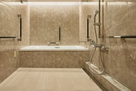 京王プラザホテルのユニバーサルルーム(UDルーム) アビリティーズの最新式の脱着式手すりが採用されました。