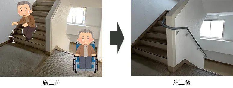 これは、住みやすいマンションにするため、解決に向けたバリアフリー工事を実地した事例になります。
