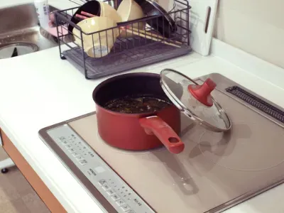 実際に料理されていたお味噌汁。使った食器もしっかり洗われ水切りで乾かされていました。