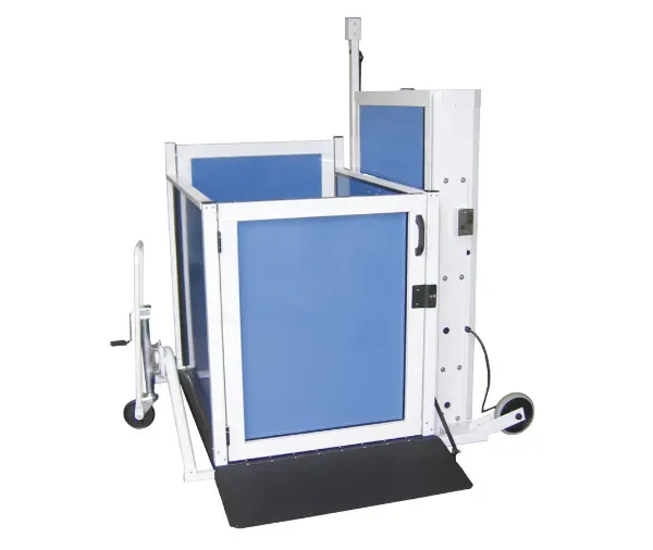 スタージーは人力で移動させることができる画期的な垂直型の段差解消機です。およそ1.2mまでの段差を解消することが可能です。