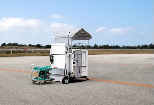 JALエアテックのご協力のもと三菱重工グループのMHIさがみハイテック株式会社をはじめ、多くの企業との連携により、取り外し式の屋根や強風対策が施された製品外装、航空機との接続時に使用される目隠しなど、様々な架装が施されました。
