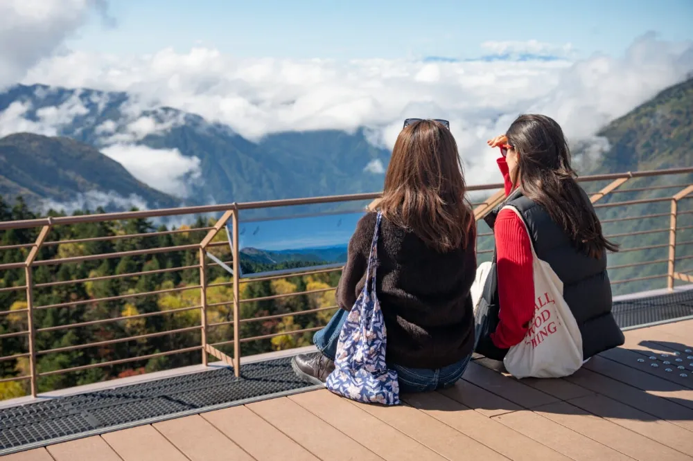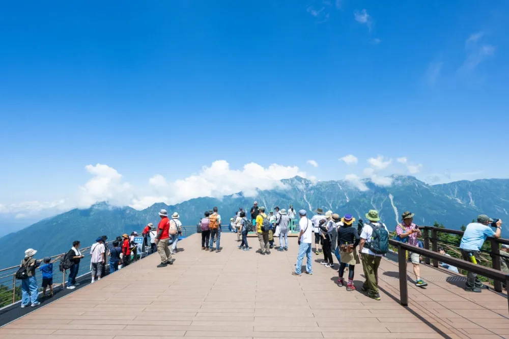 第二ロープウェイは日本で唯一の二階建てゴンドラとして知られ、標高2,156mの展望台からは槍ヶ岳や穂高連峰、笠ヶ岳を一望できます。