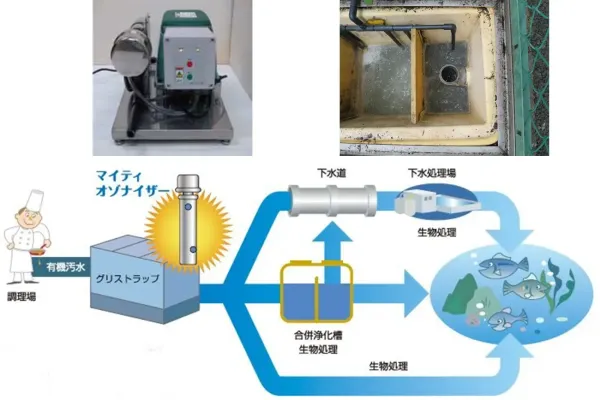 グリストラップの油や汚泥をオゾンで浄化する装置「マイティオゾナイザー」