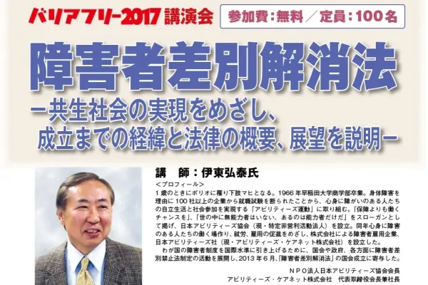 バリアフリー2017講演会 障害者差別解消法 −共生社会の実現をめざし、 成立までの経緯と法律の概要、展望−