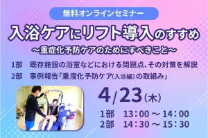 【オンラインセミナー】 入浴ケアにリフト導入のすすめ~重度化予防ケアのためにすべきこと~