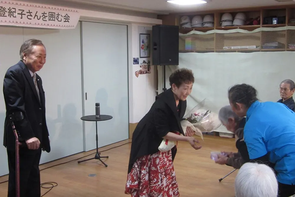 また、サプライズで歌も披露してくださりました。コンサートの演目でもある美空ひばりさんの歌や、知床旅情、100万本のバラなど、参加者のリクエストに応じてアカペラで歌ってくださり、感激して涙ぐむ方も多くいました。
