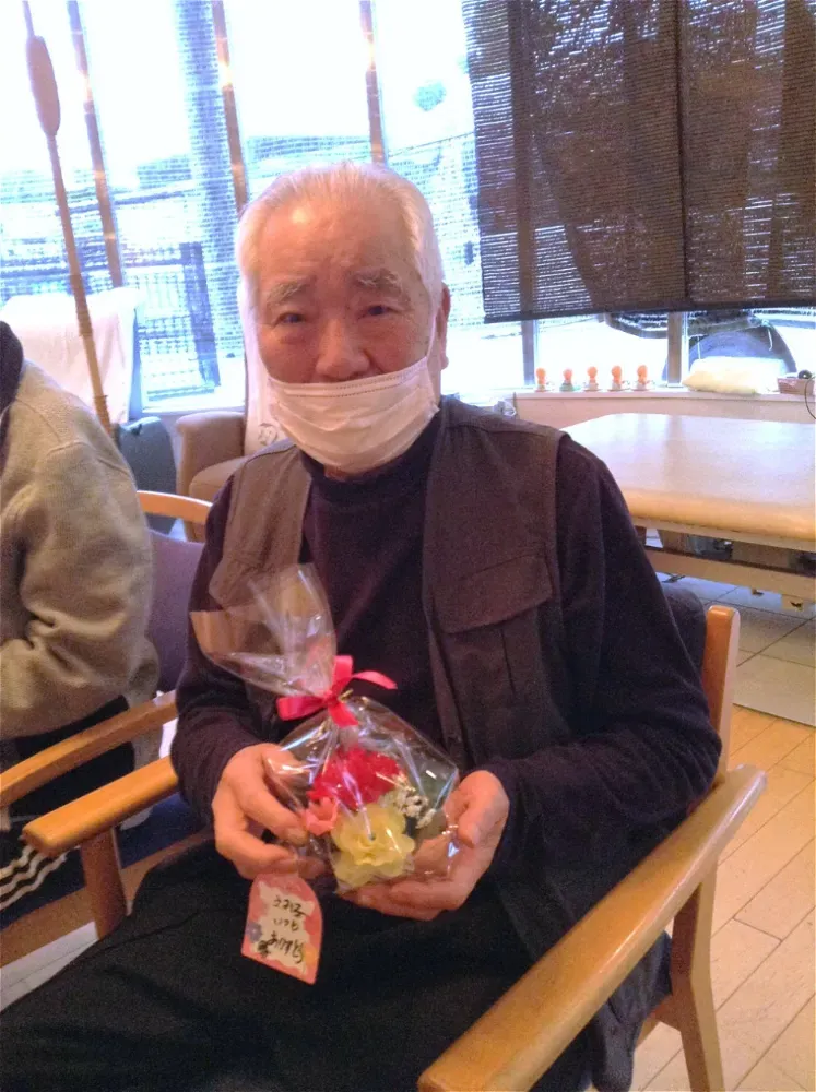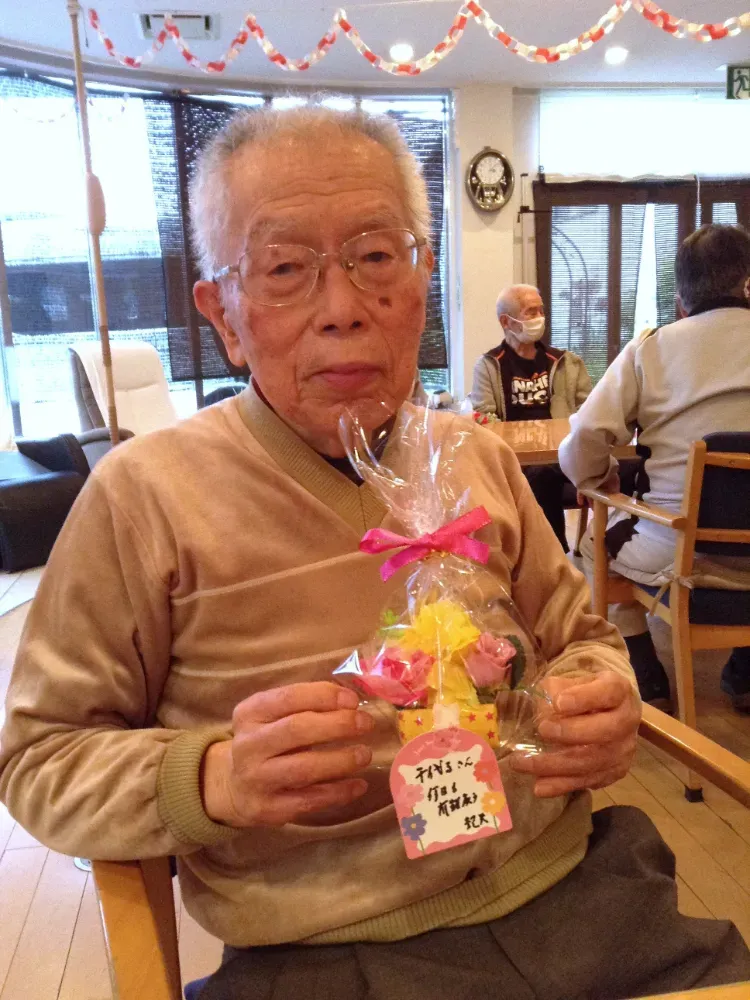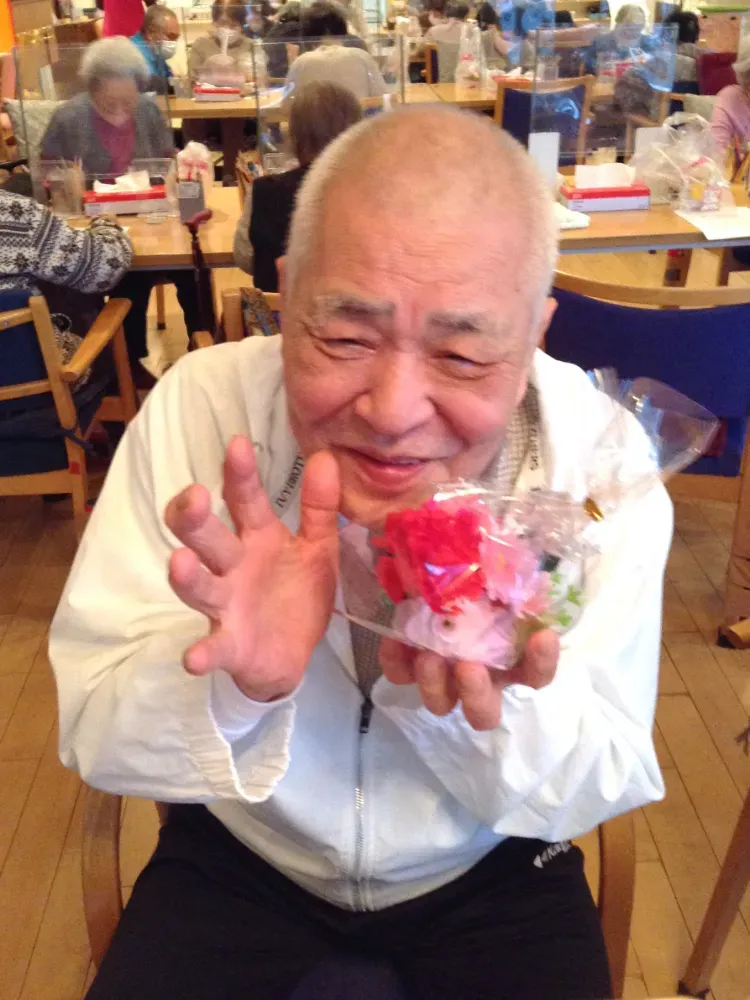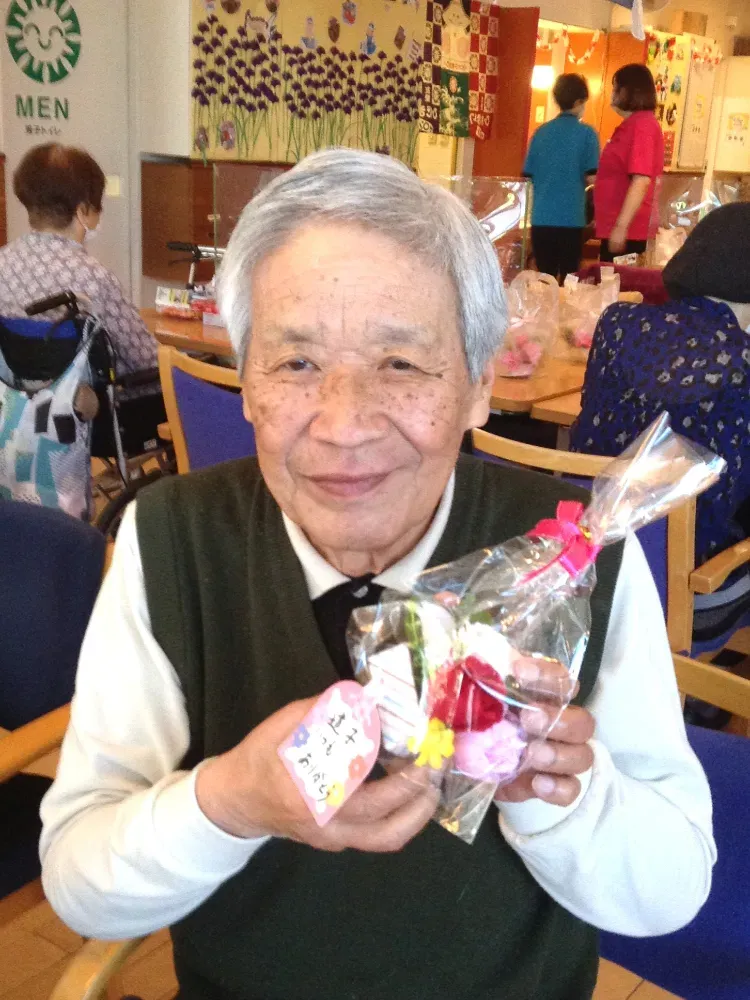 母の日制作は毎年の恒例イベントですが、今年は男性の利用者様に、奥様や娘様、お嫁様、ご姉妹そしてお母様へのメッセージをご自身でカードに記していただきました。
