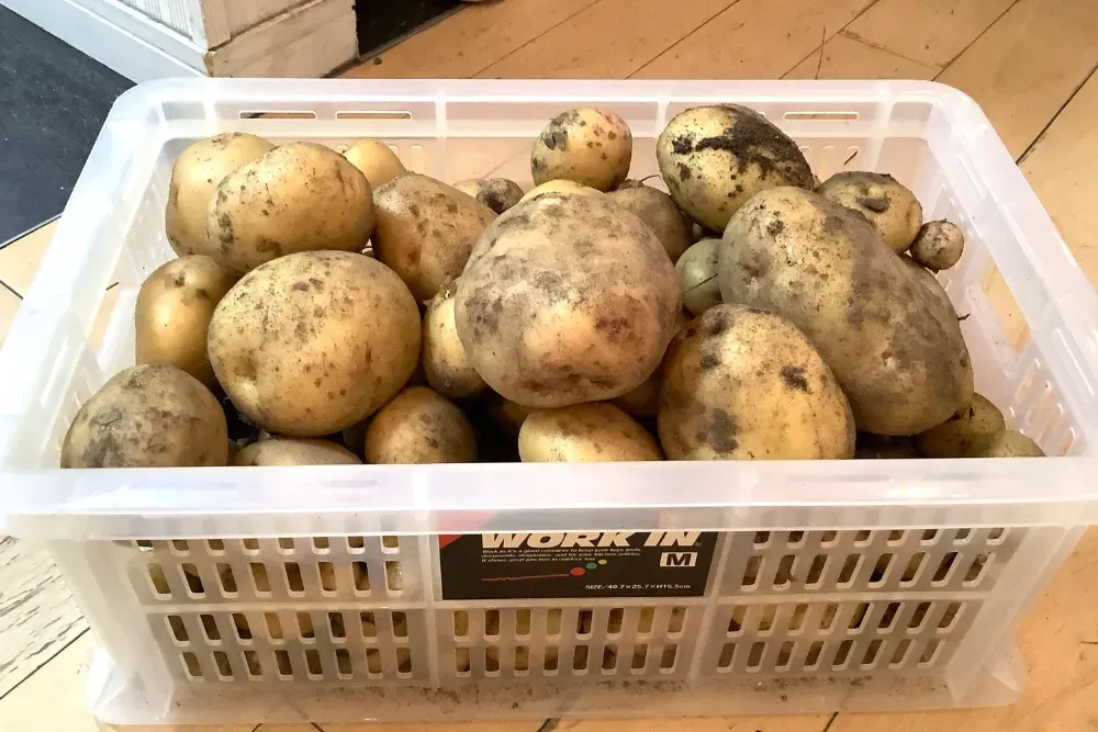 そして、葉っぱが少し枯れて、茎が倒れてきたタイミングで、大小さまざまなじゃがいもを収穫しました。