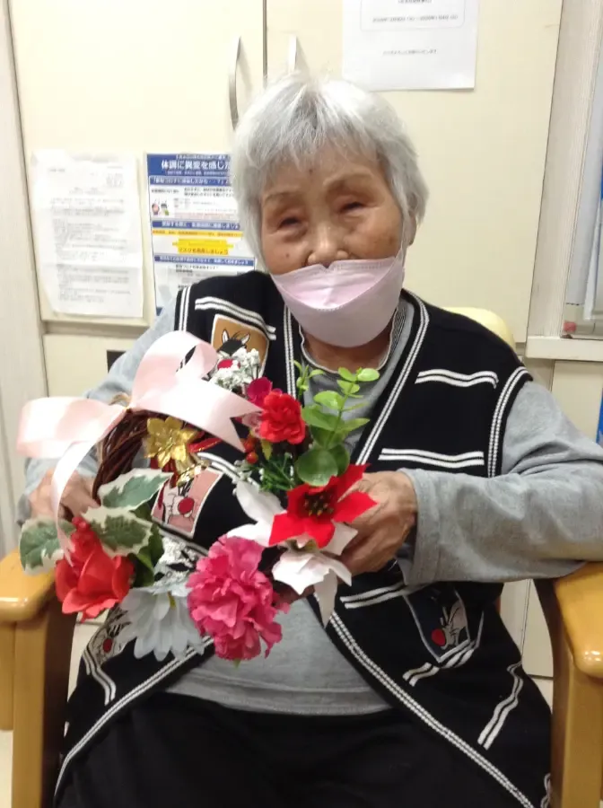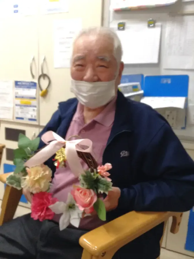 朝夕の送迎で、玄関先に飾っているリースを見て、職員も大感激です!