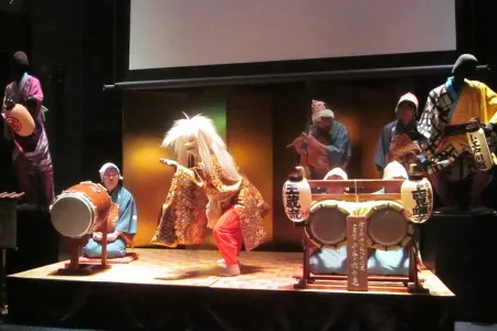 祭りで使われる山車の大きさに驚きです。お囃子の演奏は、祭りの興奮が感じられる見ごたえのある内容でした。お囃子は、日曜・祝日に演奏されます。