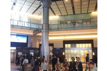 駅舎の南ドーム内にある、南口構内を見学の際は、エレベーターで2階にあがり、2階から構内を見学しました。