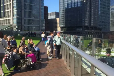食事後は、「屋上庭園」にて食後の休憩を兼ね、午前中に散策した駅周辺の景色を上から眺めながら、お話しなどをして過ごしました。当日は暑くなく寒くも無い正にツアー日和であった為、一時、のんびりした時間をとりました。