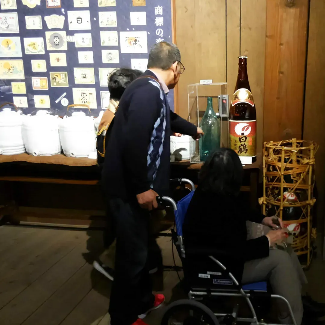 次に向かう白鶴酒造記念館は、メリケンパークから30分ほど離れた灘五郷のひとつ御影郷にあります。外国のお客様も大勢来ておられました。