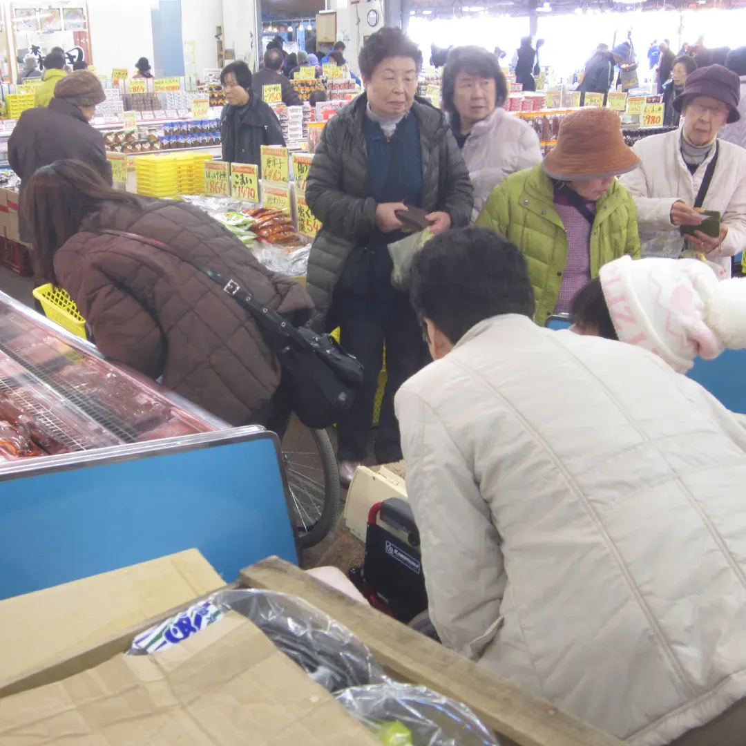 おさかな市場での買い物は大混雑で大変でしたが、スタッフの方々がしっかりと誘導してくださったので、満足な買い物ができました。