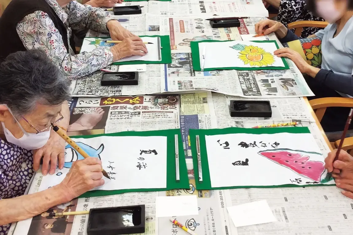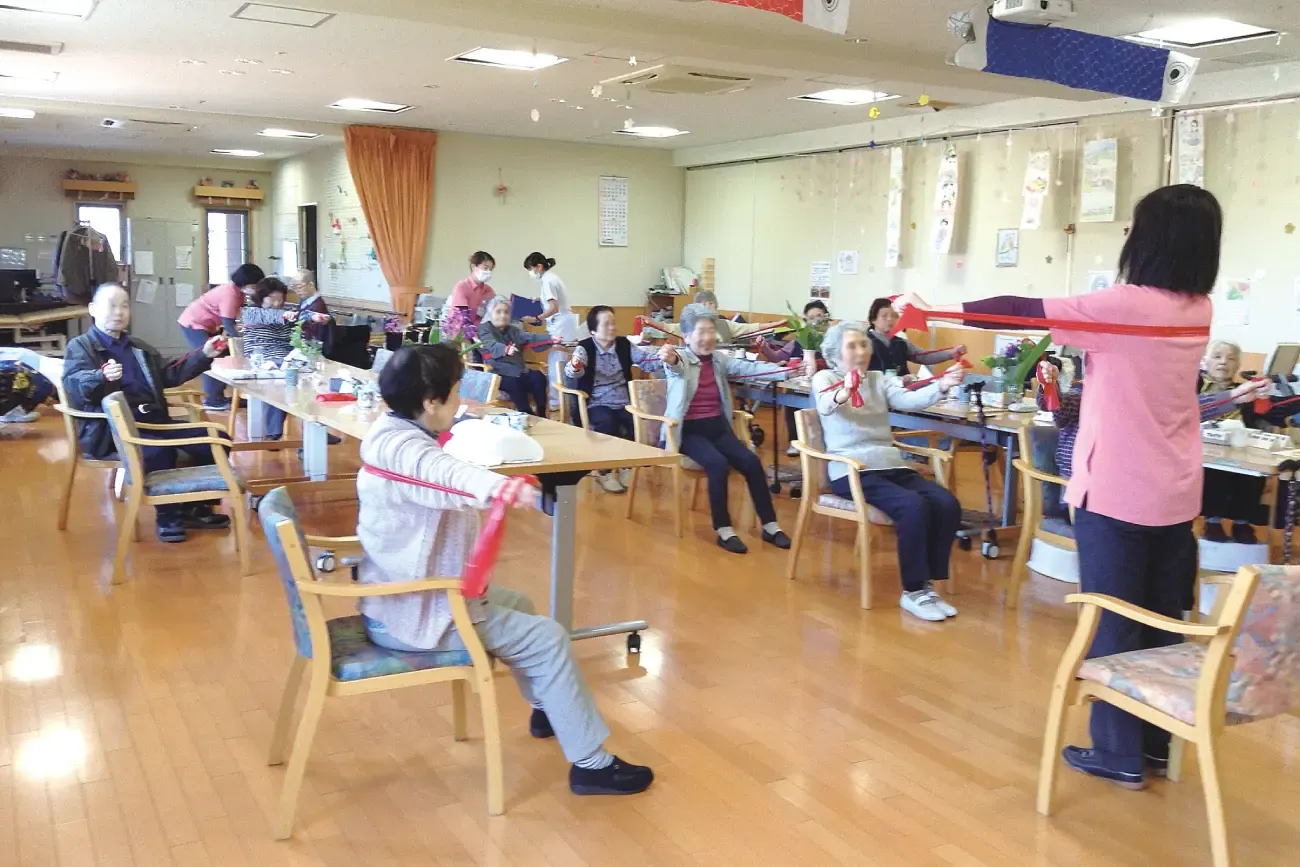 遊具を使った楽しいレクリエーションで笑ったり、手工芸や趣味活動のなかでお喋りしたり…。