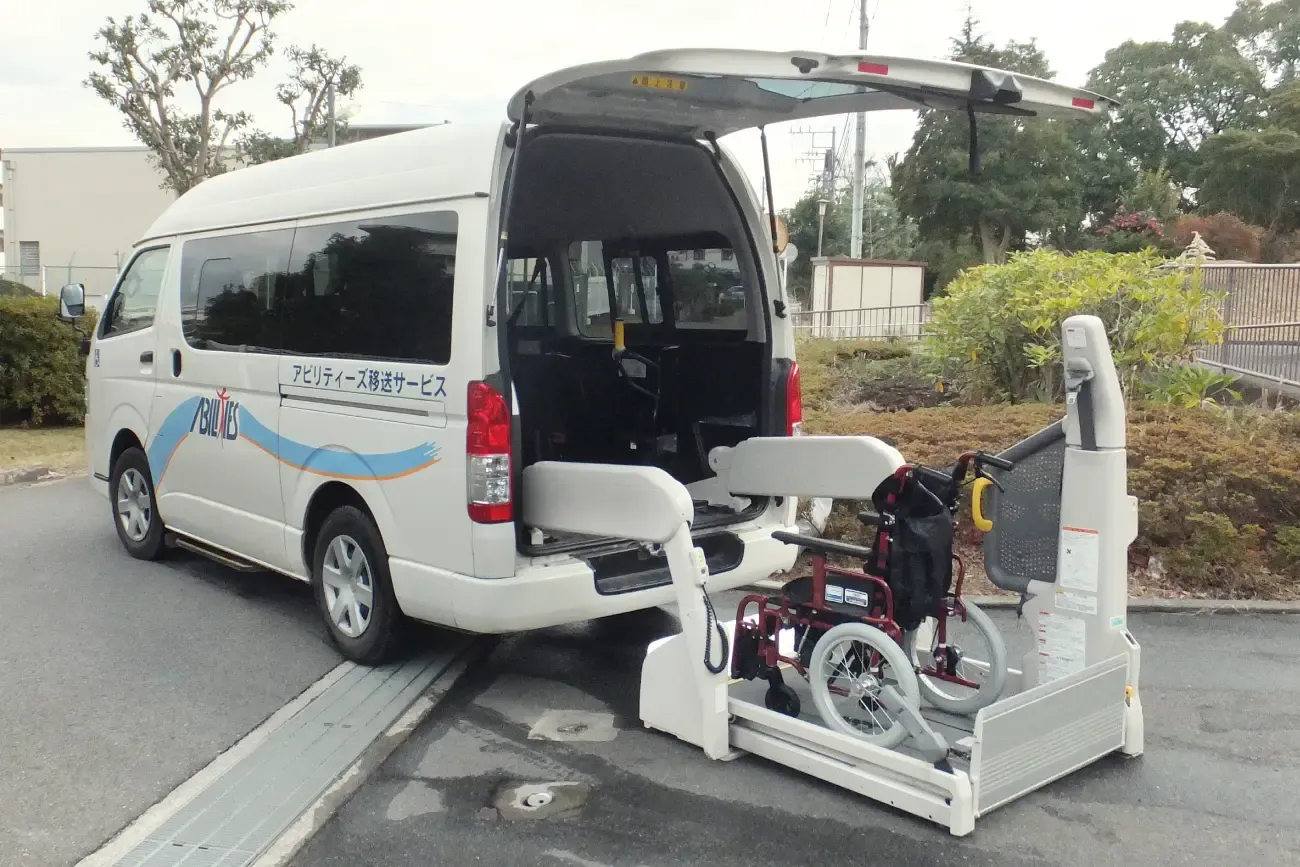 送迎車は、スロープもしくはリフト、そして安全な車いす固定装置を装備しています。