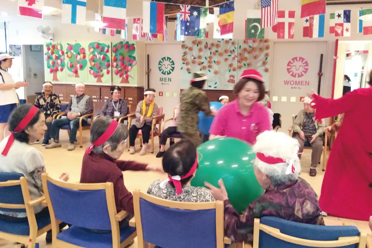 遊具を使った楽しいレクリエーションで笑ったり、手工芸や趣味活動のなかでお喋りしたり…。