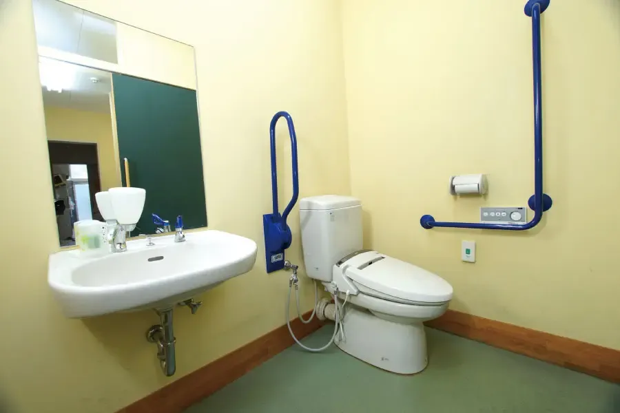 昇降洗面台、ADL(日常生活動作)用品を揃え、“自分でできる”環境づくりに努めています。