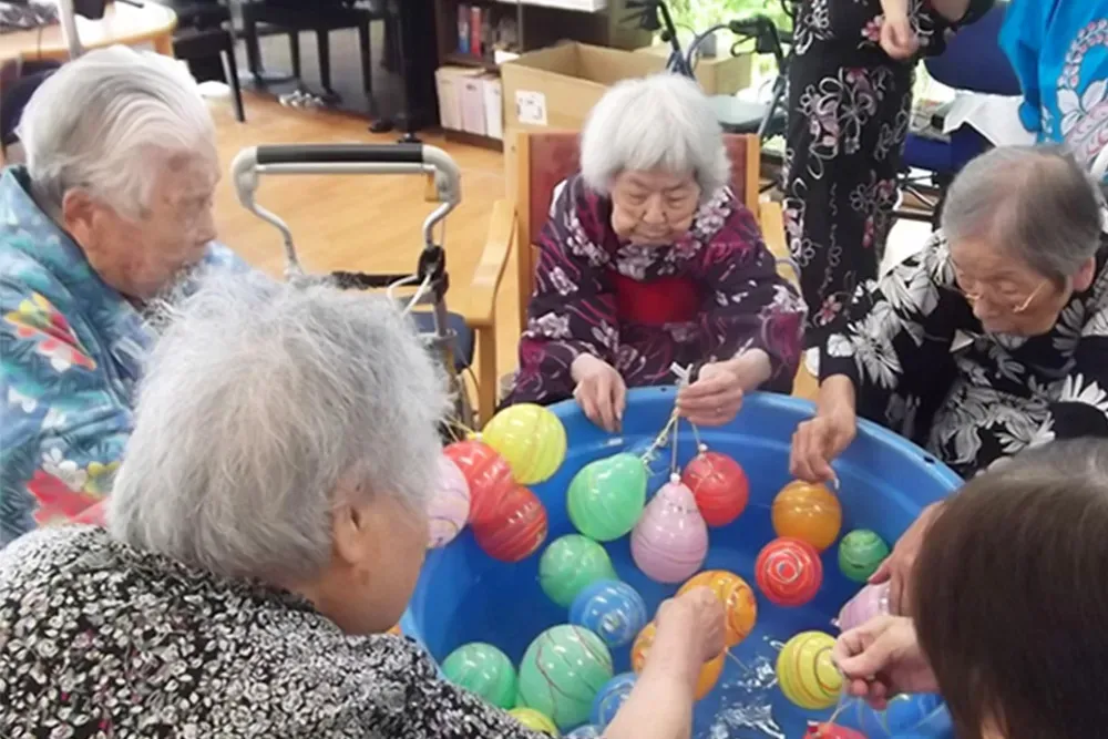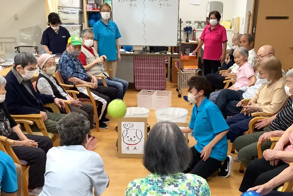 遊具を使った楽しいレクリエーションで笑ったり、手工芸や趣味活動のなかでお喋りしたり…。