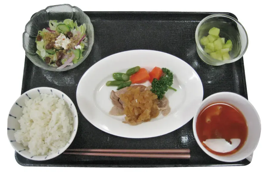 管理栄養士による献立は、栄養・塩分等のバランスを考慮し、かつ美味しく味わっていただくために、召し上がる時間に合わせて最終調理しご用意します。