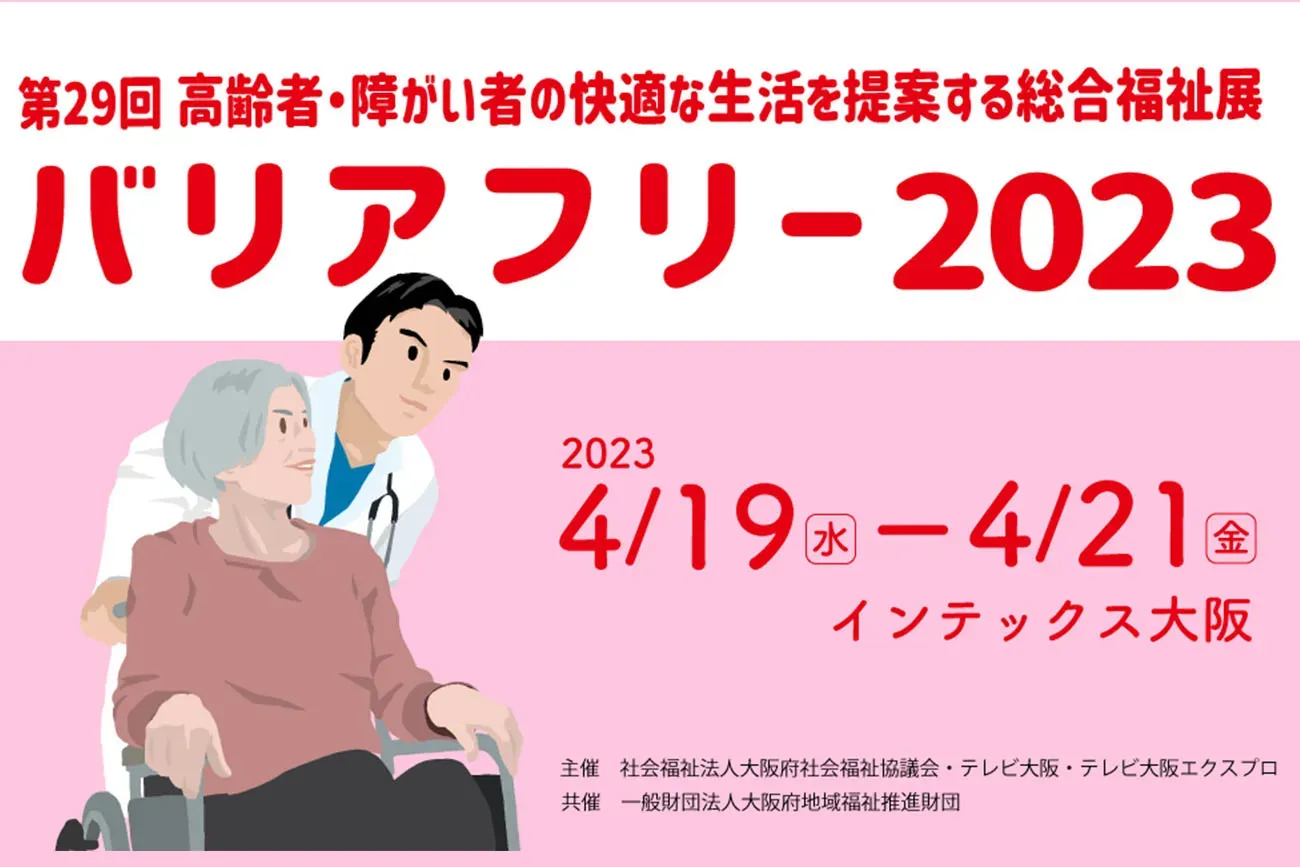 西日本最大級の総合福祉機器展バリアフリー2023に、アビリティーズ・ケアネットブース(5号館203)と企画展示ブース「ユニバーサルな街づくり~2025万博へ向けて~」(5号館504)の2箇所にて出展します。