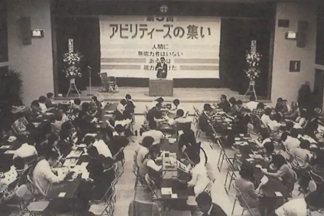 同年6月、心身に障害のある人たちの働く場作り、就労、雇用の促進をめざし、株式会社による障害者雇用企業、日本アビリティーズ社(現・アビリティーズ・ケアネット株式会社)を設立した。障害者中心にわずか6名の小さな出発でした。
