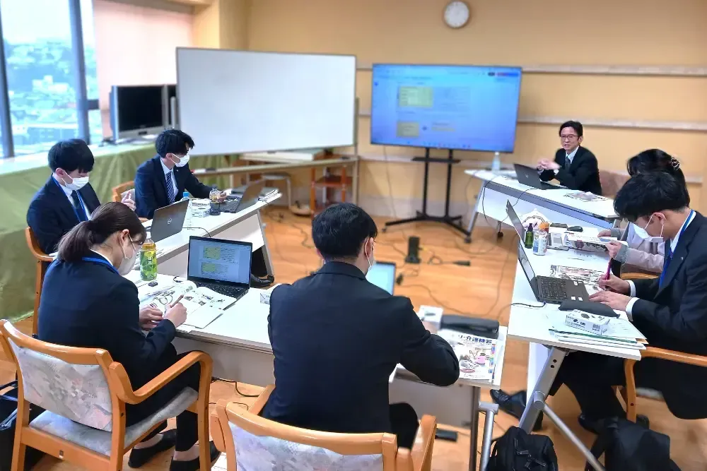 名刺交換などをはじめとするビジネスマナーから、会社の歴史、お客様との関わり方、当社の多岐にわたる事業内容まで、社員が講師をつとめ理解を深めました。