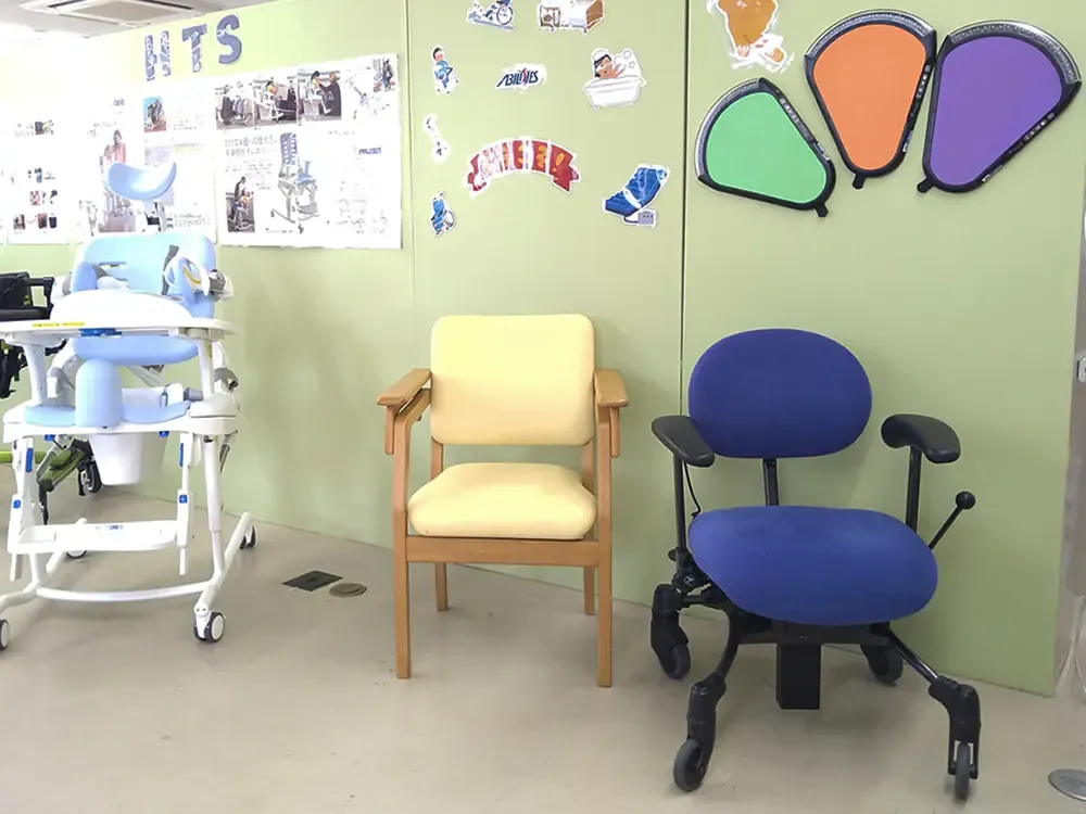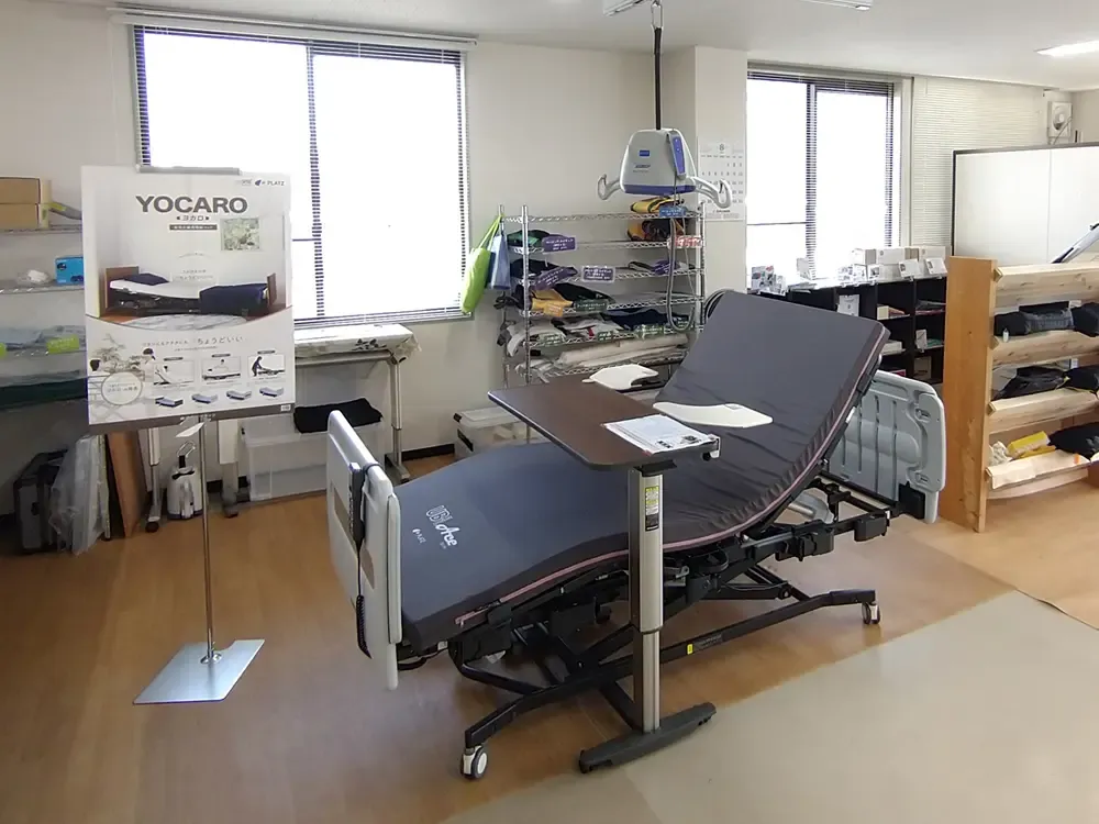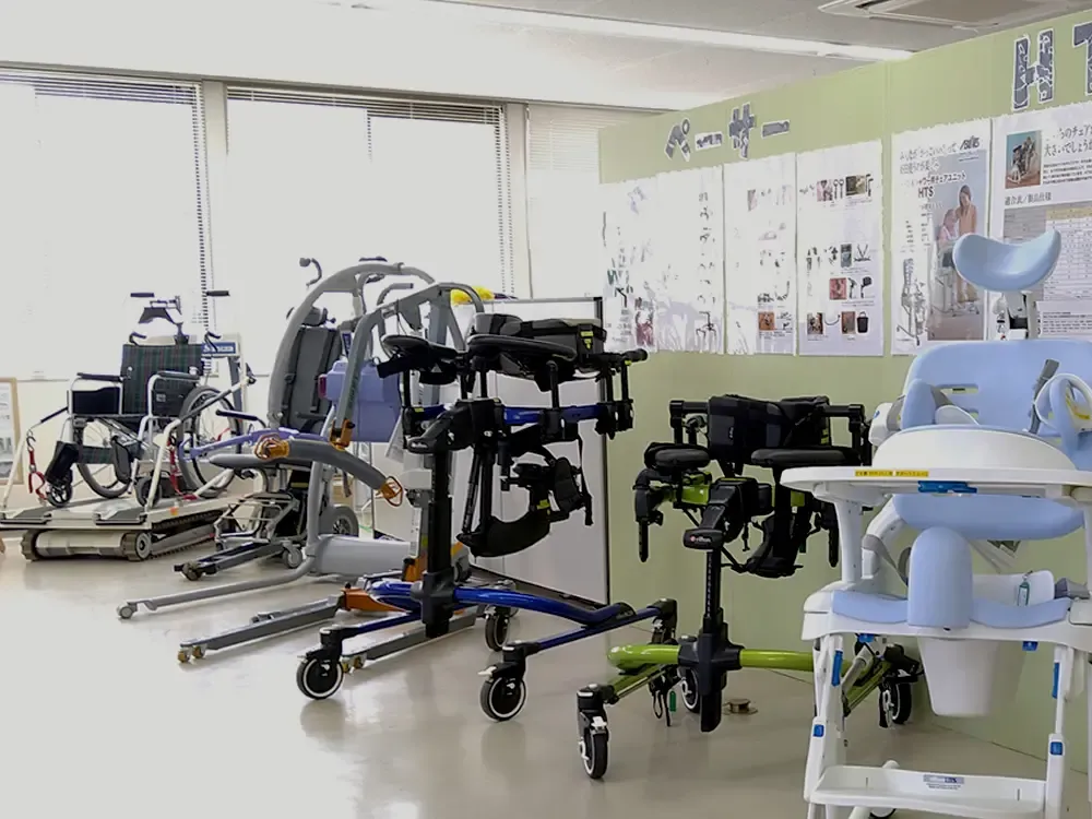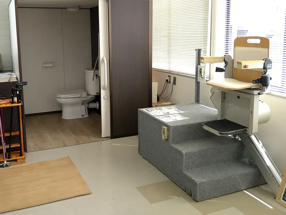 ショールームでは移譲機器やリハビリ機器、階段昇降機や自助具、最新のレンタル商品等を展示しています。実際に商品を手に取り体験していただく事ができ、障害のある方や身体機能の低下した高齢の方の自立を支援し、介護負担を軽減するための福祉用具のご相談・ご提案を承っています。店舗にない商品に関してのご相談も受けております。