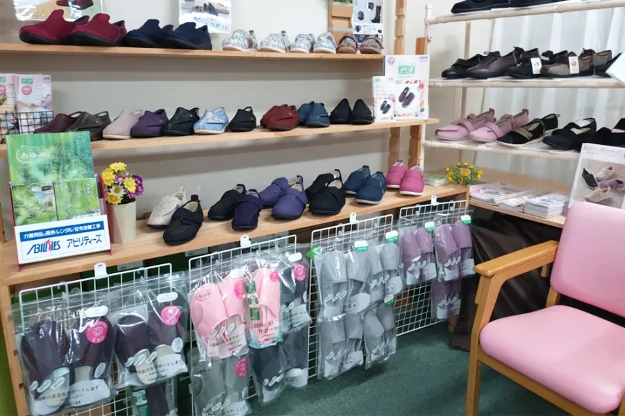 営業所は、名鉄瀬戸線「瓢箪山駅」「守山自衛隊前駅」から徒歩約10分、市バス「守山東」バス停すぐにございます。ショールームも併設しており、直接福祉用具をご覧になっていただく事が可能です。靴や杖の在庫をご用意しておりますので、急ぎご入用の場合はお問い合わせください。市販の靴ではサイズが合わずお困りの方、フィッティング相談対応致します。