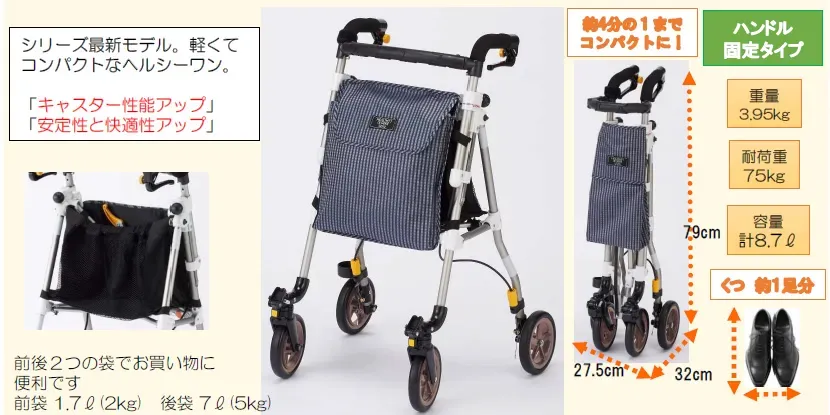 コンパクトタイプのハッピーミニのハンドル高さがさらに5cm上がり、より身長の高い方も使用できるようになりました。
