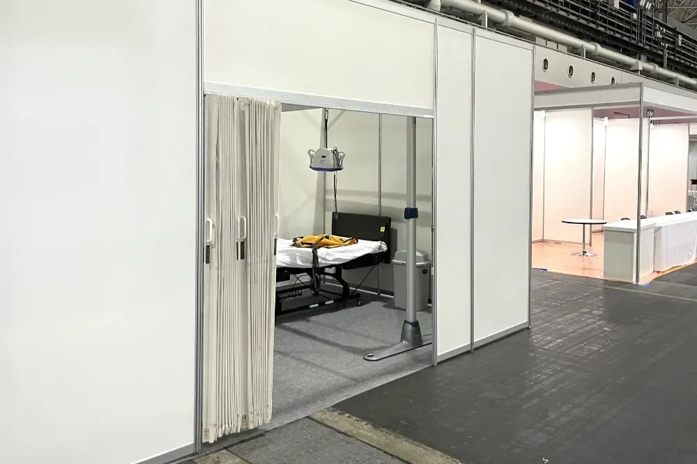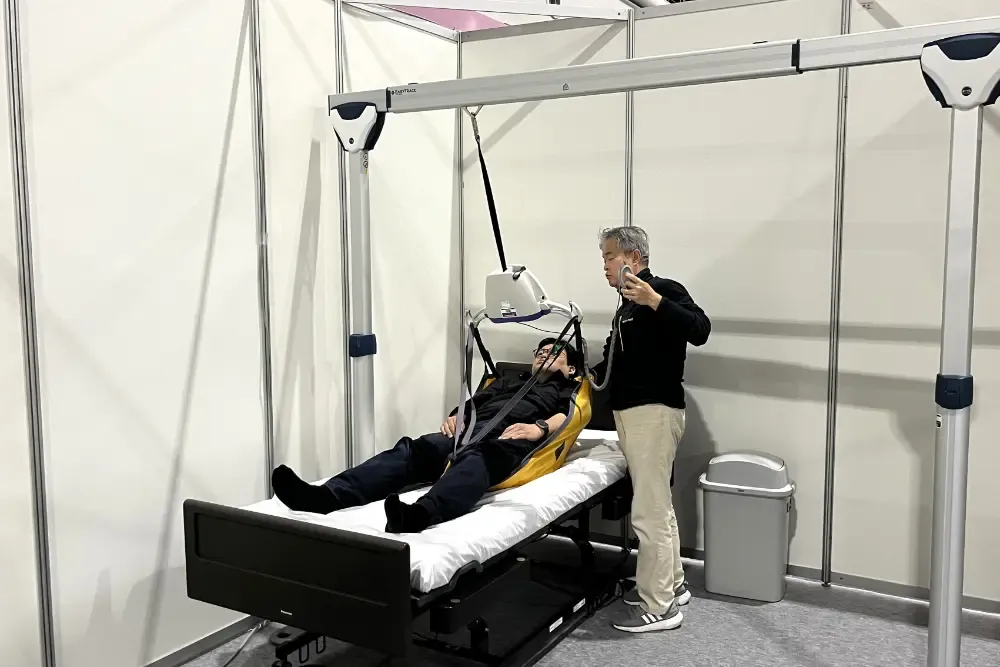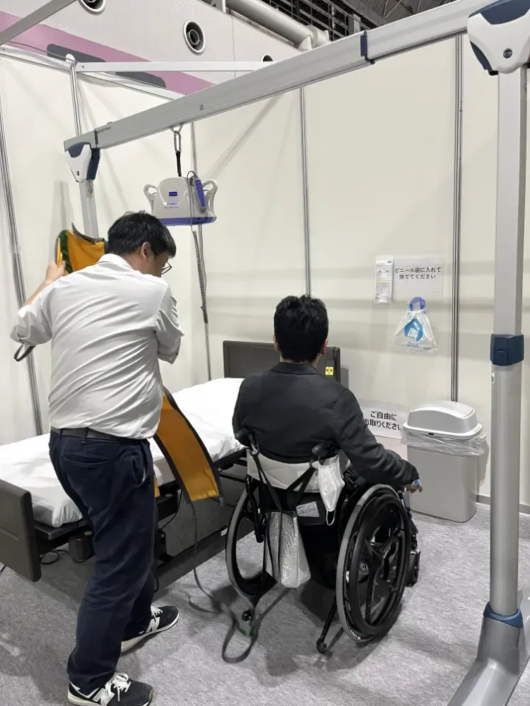 2025年4月16日(水)~18日(金)に大阪で開催された福祉機器展「バリアフリー2025」の仮設おむつ交換所に、据置型リフト“マキシスカイ”を貸出協力しました。