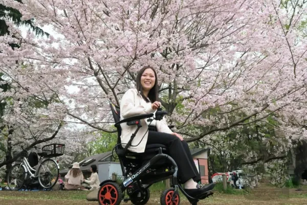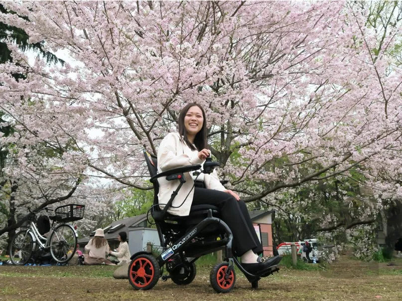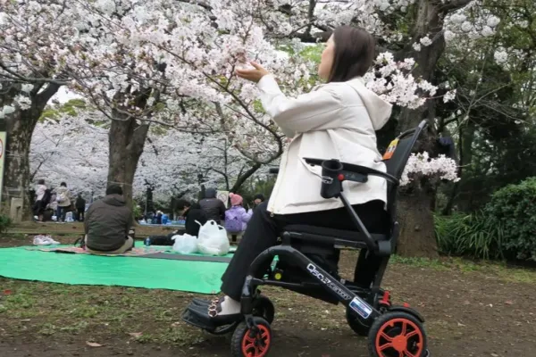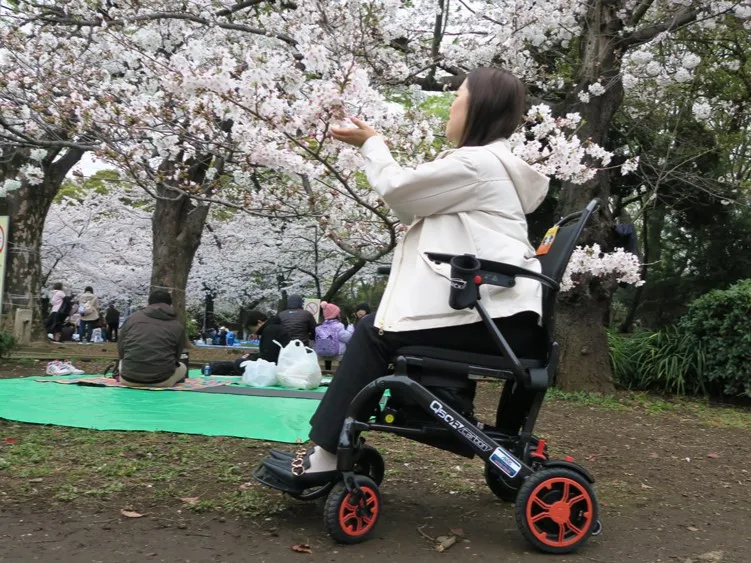 電動車いすからイメージできない軽量・コンパクトさで、行きたかったお花見が容易になりました。