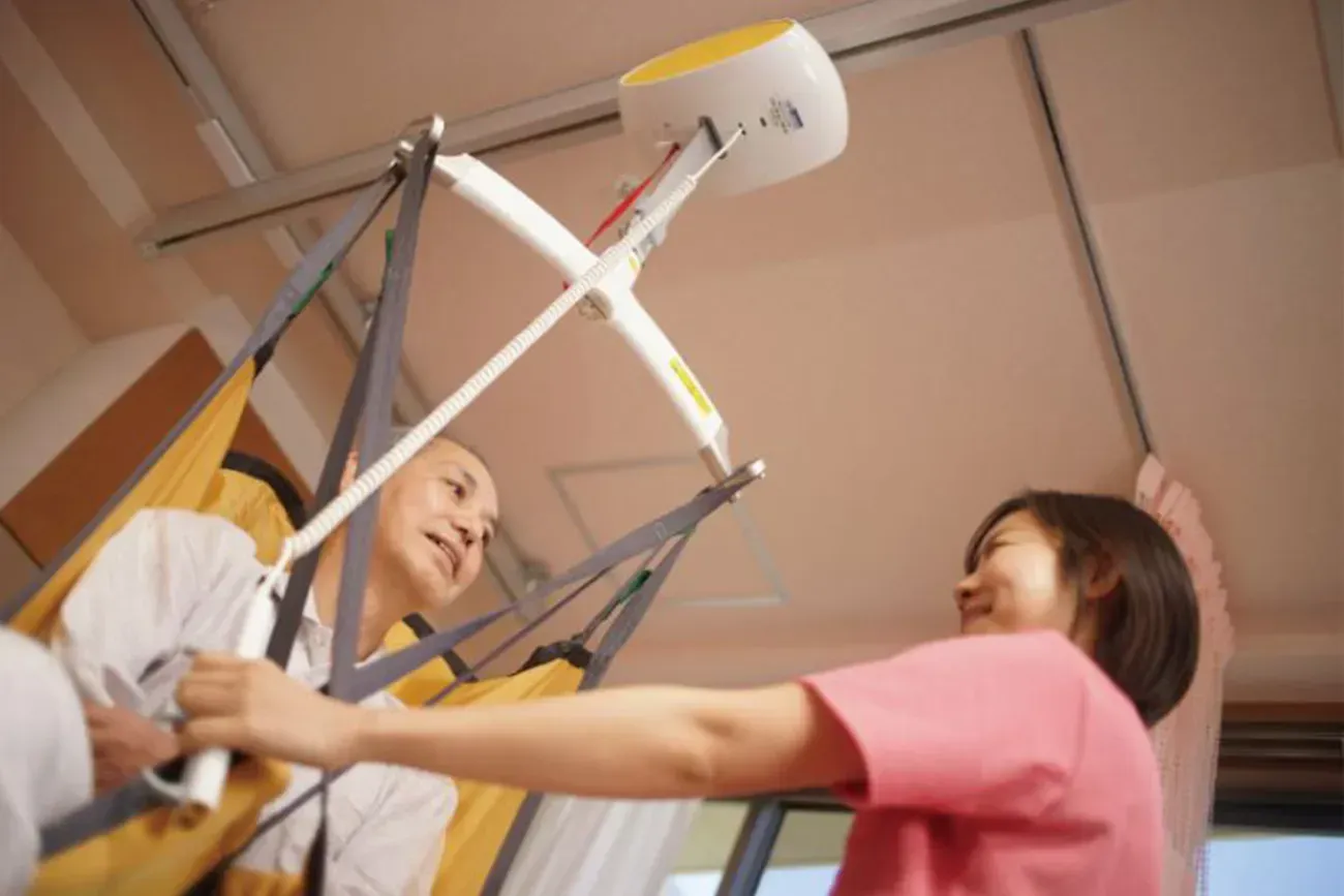 ご紹介しているリフトは天井走行リフトで、ベッドサイド、浴室、トイレ、トレーニングルームなどの様々な場所での介助を連続的に行うことが可能になります。