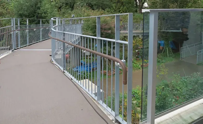 災害時のエレベータが使えない時の避難路。2階から地階への広いスロープとなっています。