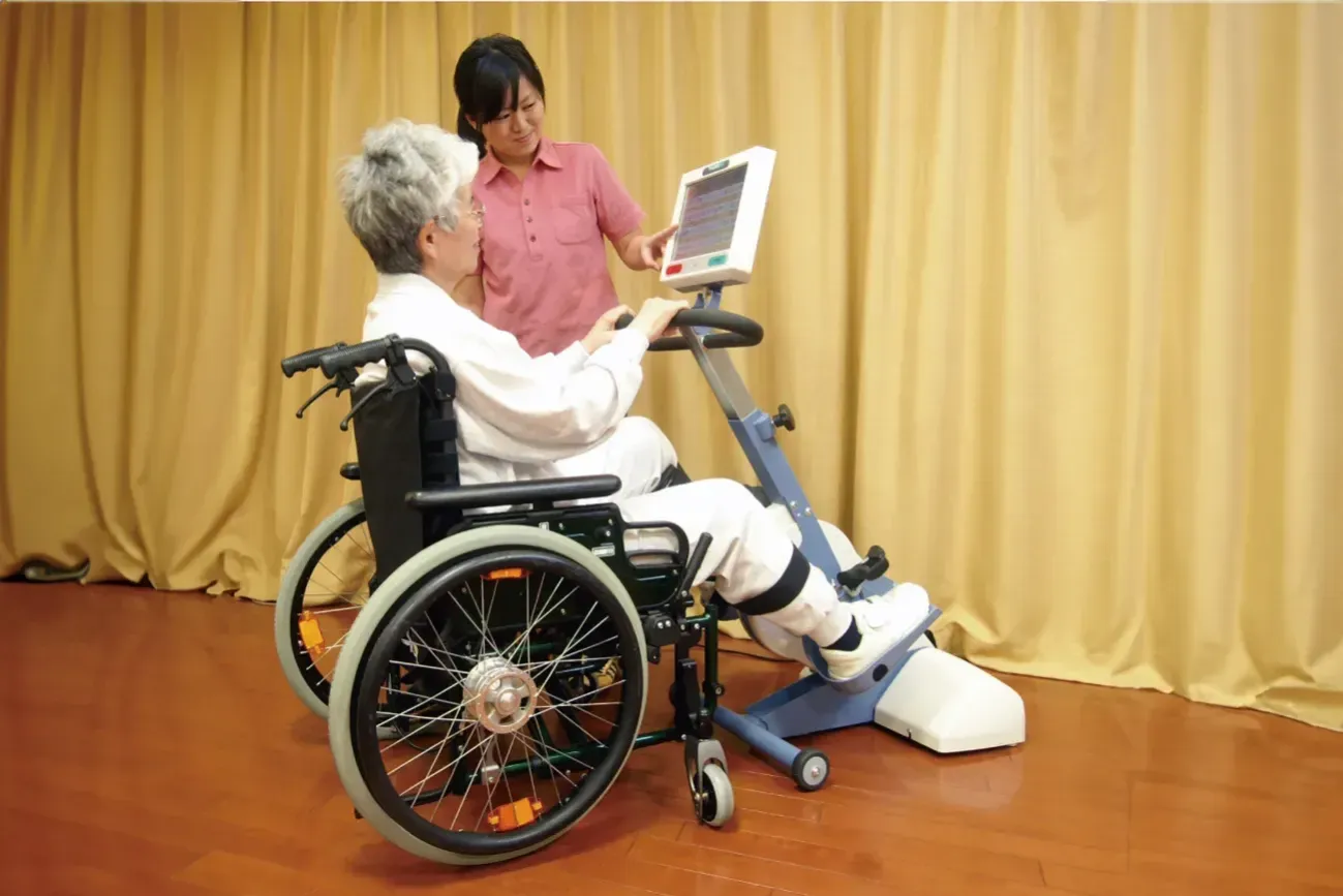 また、筋力も自然とついていくので、体力の回復、維持、向上に繋がります。体力の回復、維持、向上は同時に、本人の気力も回復、維持、向上させるため、ご利用者一人ひとりの前向きな取り組みへとつながります。最初は5分程度しか足漕ぎができなくても、徐々に長い時間を漕げるようになり、その中で達成感を味わい、自信が持てるようになります。そうすることで、様々な事へ挑戦する意欲を取り戻し、目標を立てて行動するようになるなど、活気のある生活を送れるようになったご利用者も数多くいます。他には、機能訓練とは別の利用方法として、お身体の状態、調子と相談しながら、ゆっくりとしたペダルの回転に身を任せてもらう方法もあり、これは筋肉の緊張の緩和にも役立っています。
