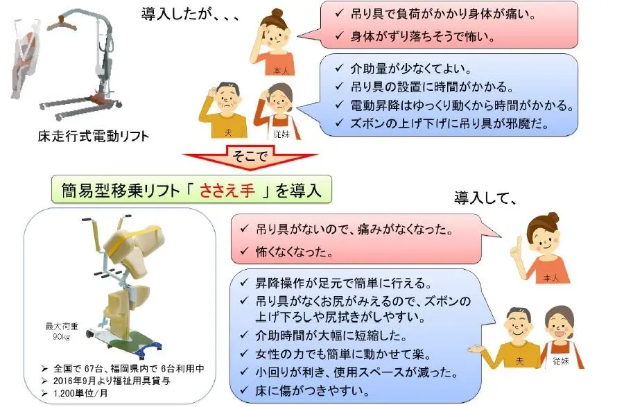 一方で、介護用リフトは操作が煩雑で時間がかかるなどの理由で導入が進まない。