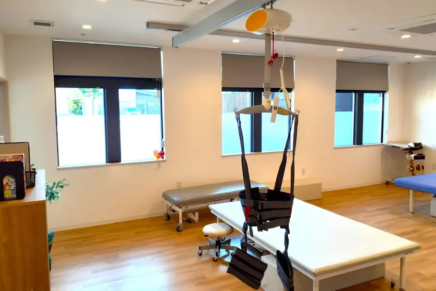 開設当初は指導訓練室とリハビリ室の2部屋で使用を開始し、将来的にはリハビリ室でレール走行式免荷システムによる立位補助・歩行訓練・トレーニング(※)を行っていく予定です。
