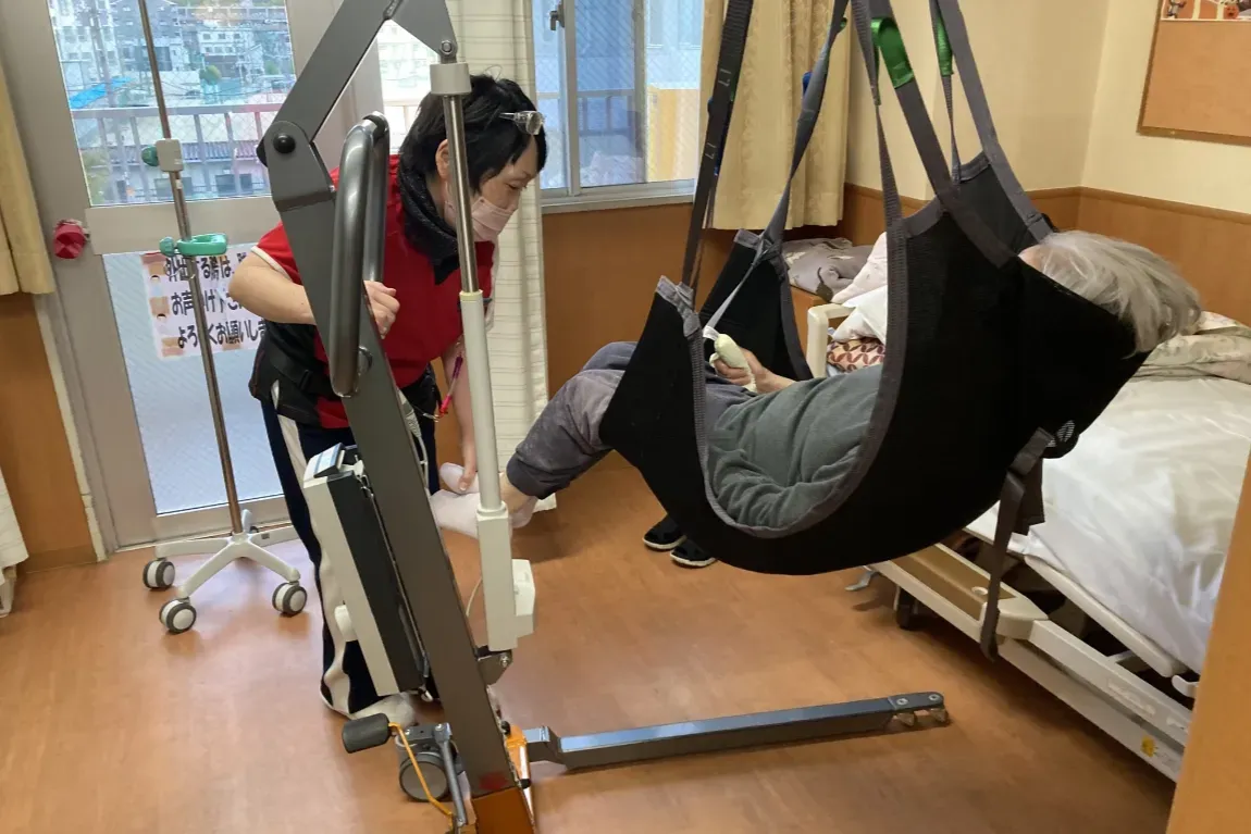 大正園様では、介護する側・される側双方において安全・安心なケア「ノーリフティングケア」に取り組まれております。