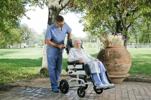 老人ホームに入居されている方が老化による体動の減少や栄養状況により、床ずれリスクが大きい為、ティルト&リクライニング車いすの選定を行いました。